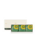 抹茶を練り込んだ黄身羽二重時雨餡(きみはぶたしぐれあん)でこし餡をつつみました。味わい深いそれぞれの餡がしっとり、ほろほろと繊細にほどけます。