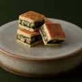 宇治抹茶エンガディナー 茶み 茶みの要(かなめ)は香り高い京都府産の熟成宇治抹茶。 色合いもあざやかな宇治抹茶を練り込んだキャラメルにくるみをぎっしりと。 バターを使用し、さっくりほろりとした食感に仕上げた生地で挟んだ、風味香ばしく香り豊かな焼き菓子です。 |